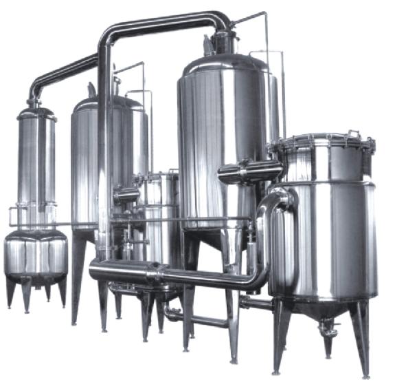 产品用途: 本浓缩器适应于中药、西药、淀粉糖、食乳品等,尤其适用于热敏性物料的低温真空浓缩。 一效汁汽除作为二效热源外,还通过低噪音热压泵将其中部分汁汽再压缩作为一效热源,使蒸发过程的蒸汽耗量大大降低,使双效冷凝器冷却水用量大大降低,达到了节约能量和节水的目的。